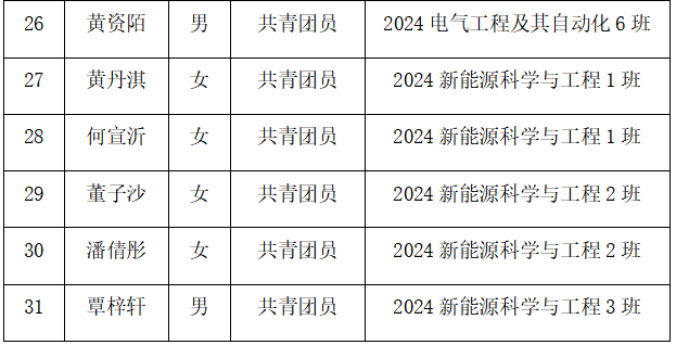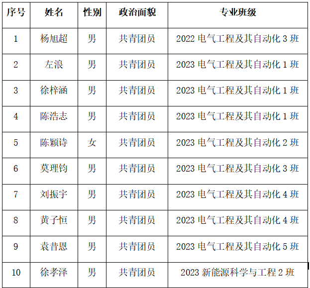 根据《关于举办电气工程学院第四期“青年马克思主义者培养工程”培训班的通知》要求,经过个人申请、团支部推荐、团委考察,杨旭超等31名同学被成功录取为电气工程学院“青年马克思主义者培养工程”第四期培训班学员,具体名单公示如下: