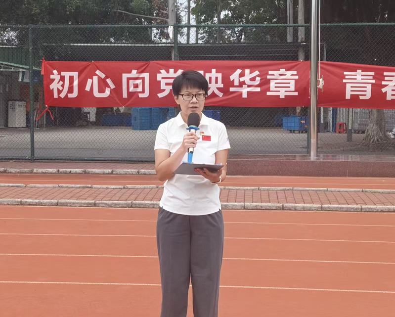 足球场上,全体人员以饱满的精神列队就绪。随着主持人宣布:“全体肃立,请国旗护卫队出旗。”国旗护卫队队员迈着铿锵有力的步伐,护送国旗走向升旗台。在庄严的国歌声中,五星红旗冉冉升起,全体师生面向国旗行注目礼,现场气氛肃穆,人心激昂。